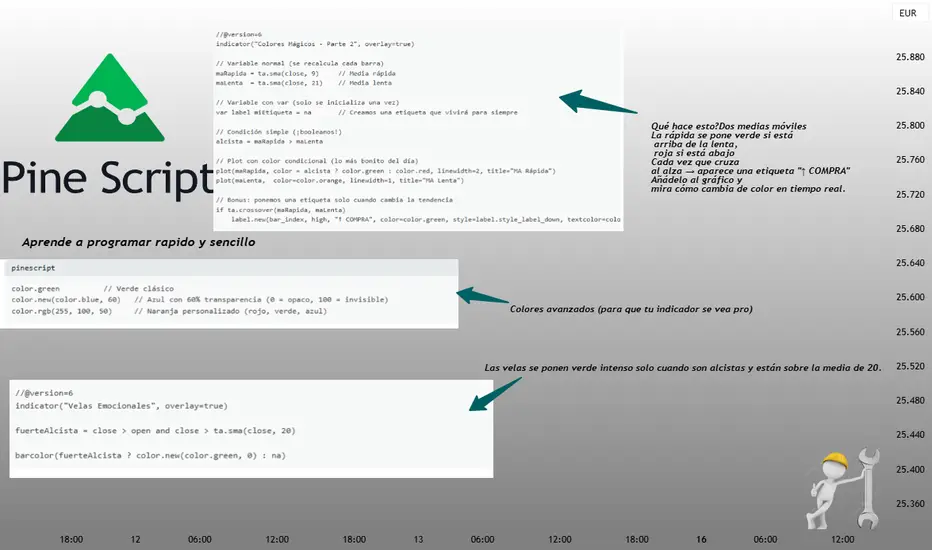 Parte 2/5 – Variables, series mágicas y plots que cambian de color¡Bienvenido de nuevo, crack! Si llegaste hasta aquí es porque ya creaste tu primer indicador en la Parte 1 y no saliste corriendo . Hoy subimos un poquito el nivel, pero tranqui: vamos a jugar con colores, condiciones y esas “series” que hacen que Pine Script sea tan poderoso.1. ¿Qué es una “serie” y por qué todos hablan de ella?En Pine Script casi todo es una serie.