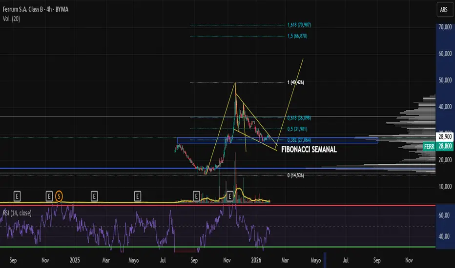 Luego de un GAP bajista gigante, la formación de un suelo, impulso, retroceso, precio comprimiéndose en forma de cuña a punto de quebrarse al alza. Un patrón técnico muy fiable para la continuidad de un segundo impulso que de momento podría ser un 150% nada mas y nada menos. Pero según la teoría de las ondas de Elliot la onda 3 debería ser mas grande que la primera, eso nos llevaría a un recorrido mucho mayor. Tal vez buscando cubrir el GAP lo máximo posible.