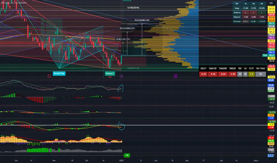 Indicadores arrancando a subir, esperando que pasen las medias de corto. Tiene como resistencia el volume profile y las emas grandes.