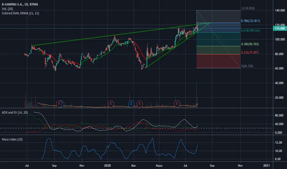 Próximo objetivo: 0.786 de Fibonacci = techo de la figura = AR$ 122 (y seguimos con los números redondos)