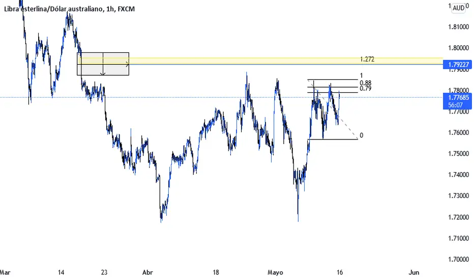 en esta idea se busca el fortalecimiento del AUD con una reaccion con un imblance y el 127 de fibonacci, con 30 pips de stop loss y que continue con la tendencia bajista en micro para buscar una salida en una posible zona de demanda en 4H marcando un gran ratio de hasta 500 pips