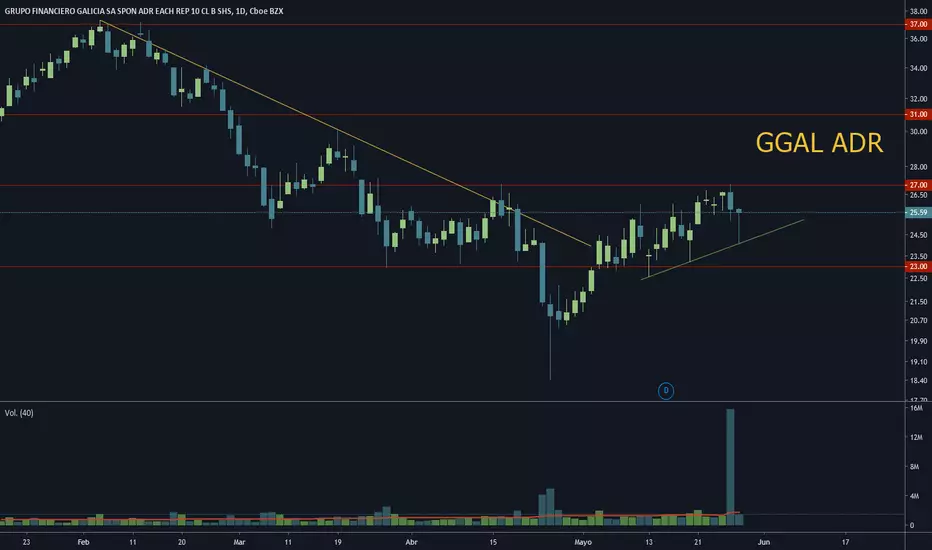 la misma tendencia de la local funciona en el ADR, ya saben que el tipo de cambio puede romper esta línea cualquier día. La vela martillo le da vida a la idea alcista