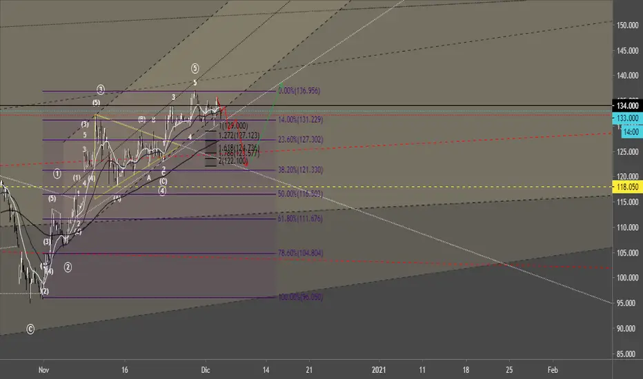 Luego de (5) -I-; (A) esta compuesto por WXY; la onda b de (B) en tiempo larga y la subida del dia de hoy seria c de (B). A la espera de (a/1) en (C) dando forma a potencial -II-