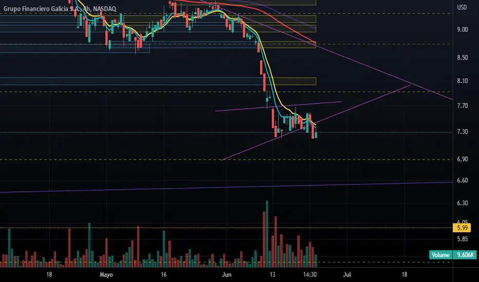 Toque preciso en 6.50 y rebote, debería cerrar el gap en 7, y de ahi volver a bajar buscando los 5.9. La tendencia sigue siendo bajista aun.Esta es mi visión, no es recomendación de operación.