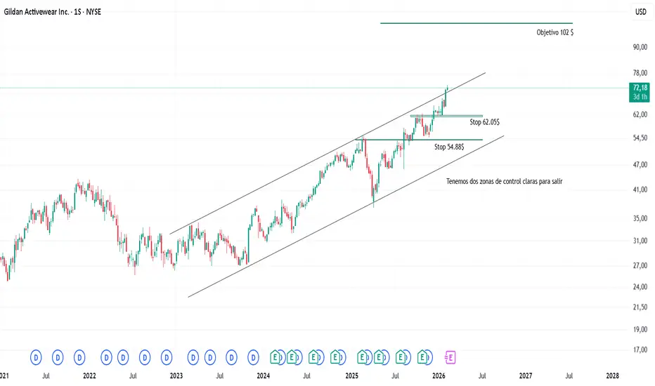 Apalancamiento y Riesgo: Gildan asumió una deuda importante para esta compra (unos $2.3 mil millones). Esto explica por qué el stop de $54.88 es tan vital: es el límite de seguridad donde la estructura del canal alcista se mantiene intacta a pesar del aumento de deuda.