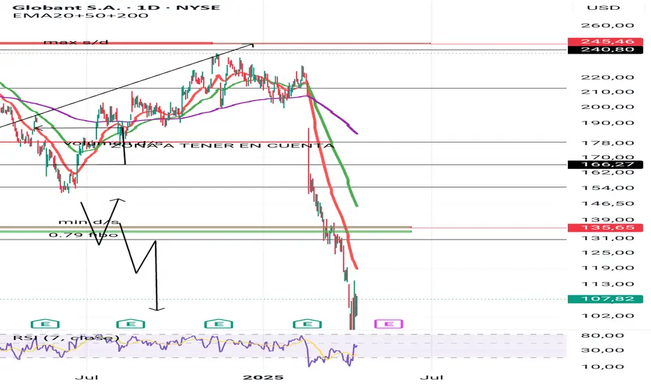 GLOBANT una gran empresa Argentina,que con este retroceso llegó a zonas de oportunidad para poder aprovechar y tener posiciones en largo con grandes retornos..