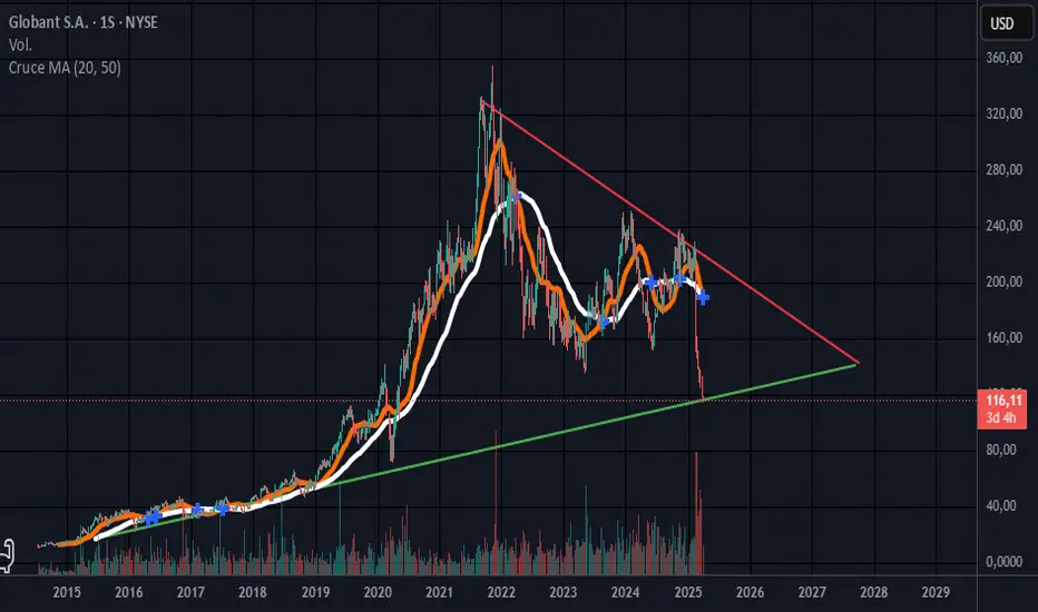 GLOBANT, un activo que de corto se ve linda entrada entr 117 y 111 donde tine un gap bajista, los indicadores horarios y diarios en el piso piso...linda oportunidad de corto plazo.