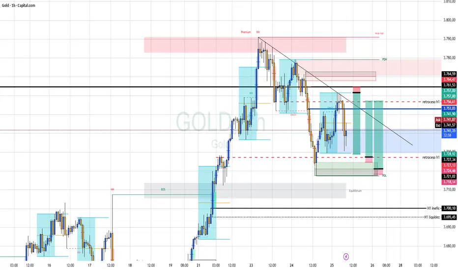 Asia, inicio al alza tocando el bajo de Asia del día de ayer para luego bajar hasta la intercepción de velas 1h y volvió a subir para completar la ineficiencia de 1h, Londres estuvo consolidado hasta el 50% de Asia