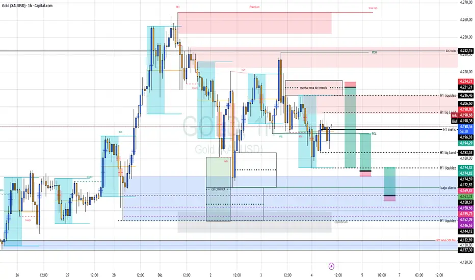 Asia tomó la liquidez de 1h de la misma sesión de Asia para bajar al 50% de las velas fuertes de 1H
