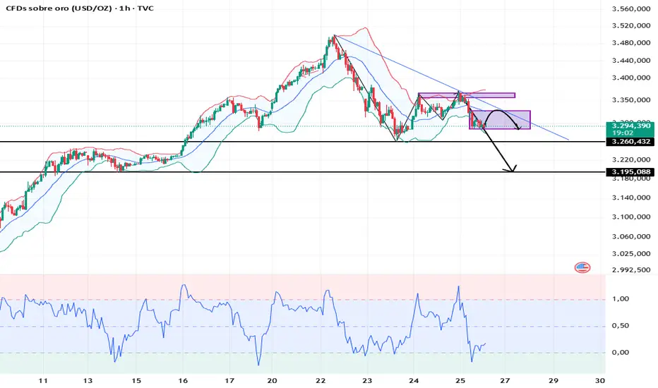 La resistencia del gráfico de una hora está en 3328 y el soporte en 3260.