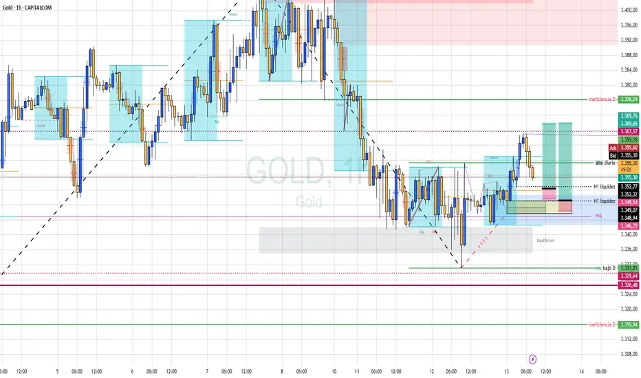 Asia bajo hasta el bajo de ayer de Asia haciendo un doble piso subiendo a tomar el alto del día de ayer para luego bajar casi llegando al 50% de Asia, Londres inicio con gap tomando la liquidez de la vela de H1, ya cubrió el gap.