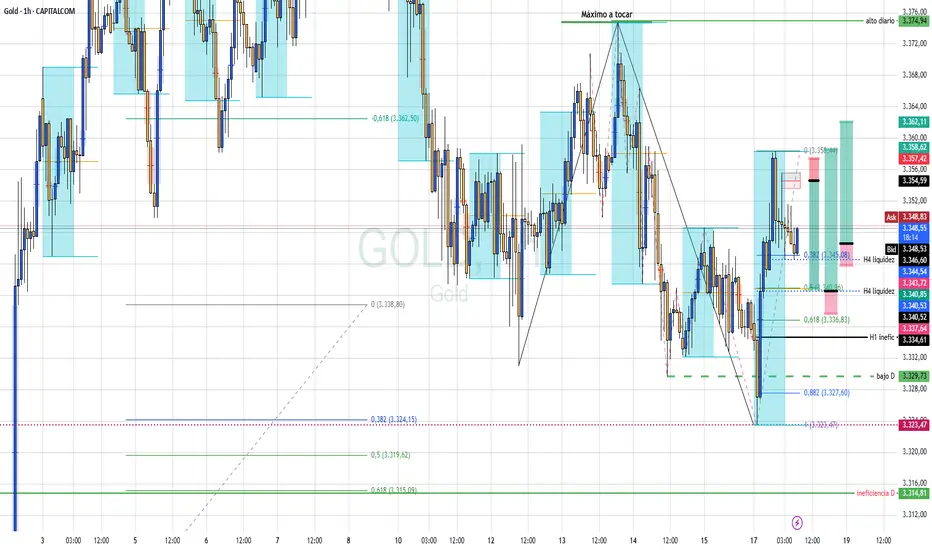 Asia inicio la tendencia bajista hasta llegar al 38.2 Fibonacci (H1, Vela de la noticia inicio del soporte hasta finalizar la ineficiencia), subió hasta el 50% de Asia 14/agt, zona resistencia muy fuerte.