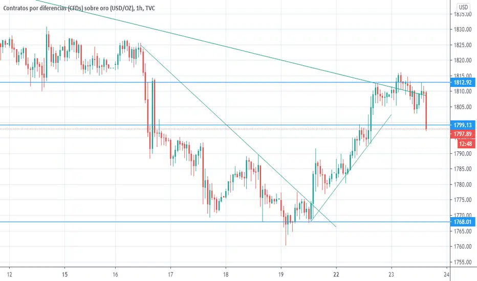 Según el análisis publicado sobre el oro, alcanzado primer objetivo de 1799 y pendientes de la confirmación de nuevos escenarios. Lo iremos estudiando en las próximas horas