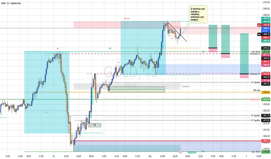Asia luego de tomar liquidez bajista subió a romper el máximo anterior para bajar a un retroceso de 1H, subiendo máximos historicos, Londres toma el alto de Asia para retroceder.