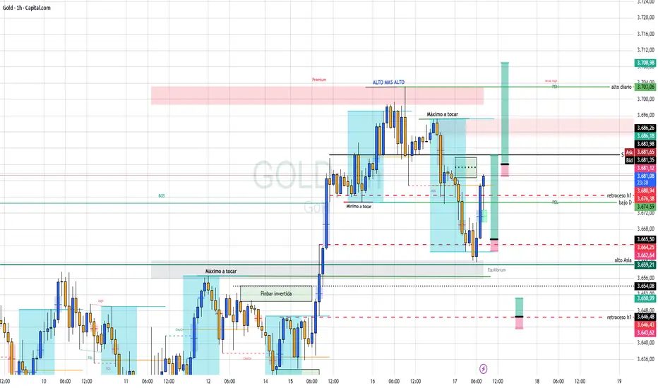 Asia subió a una resistencia H1, para luego bajar a tomar el bajo diario de ayer y retroceder hasta una resistencia y volver a bajar hasta la vela envolvente de 1H.