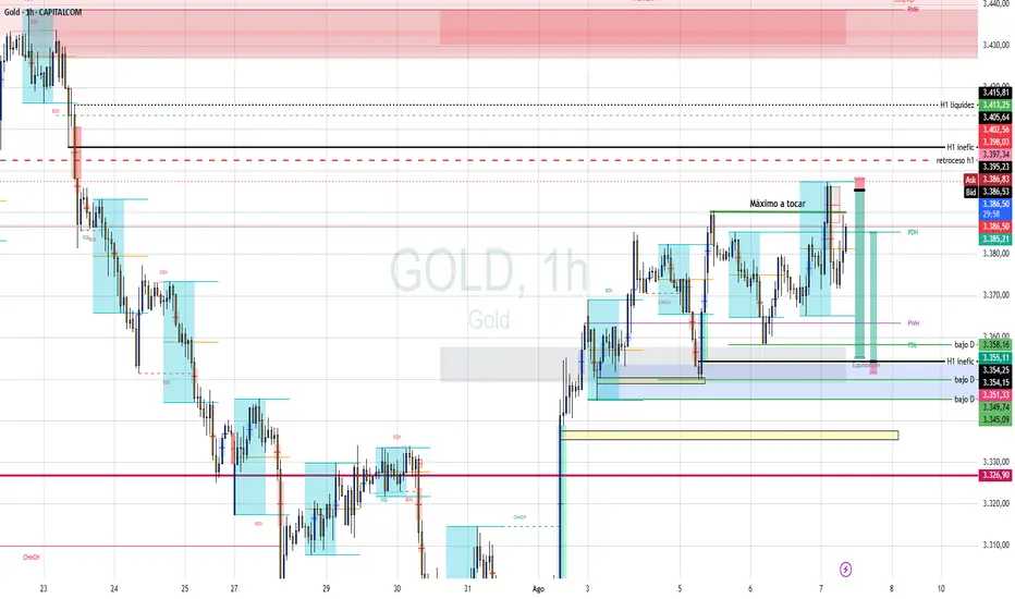 Asia tomó liquidez bajista de h1 para luego subir con todo para luego caer hasta mas abajo del 50% de su sesión, Londres consolido en el lado bajo de Asia y la noticia impulso el oro.