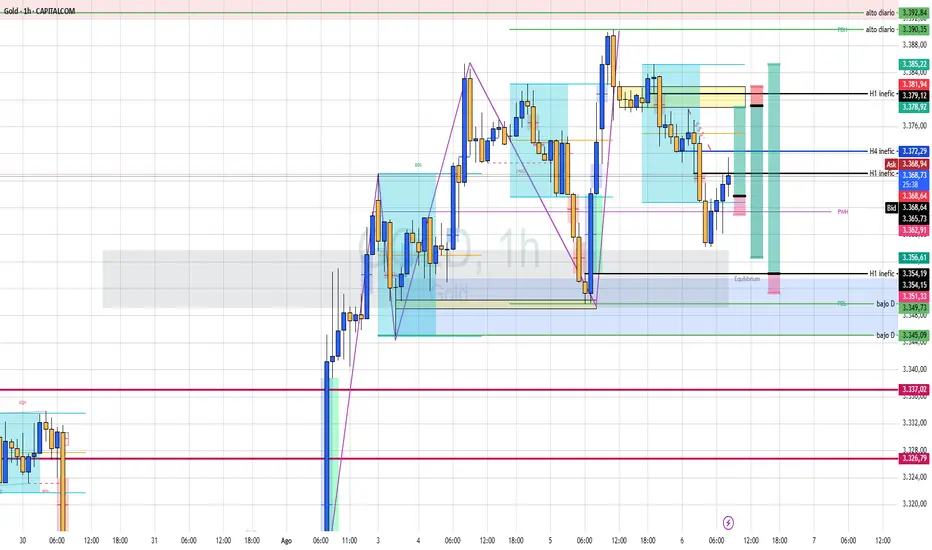 Asia inicio alcista para bajar hasta el nivel de Asia del día martes 05, Londres hizo un pequeño consolidado para luego seguir bajando hasta que realizo EQL h1, y de ahí subió al nivel de Asia.