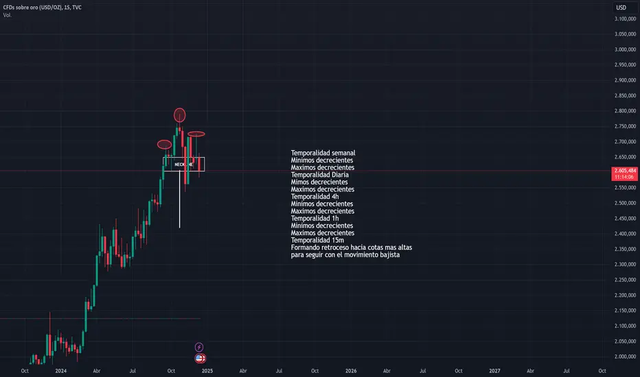 Formacíon de Hombro cabeza hombro en gráfico semanal con una ruptura ya de el neckline.