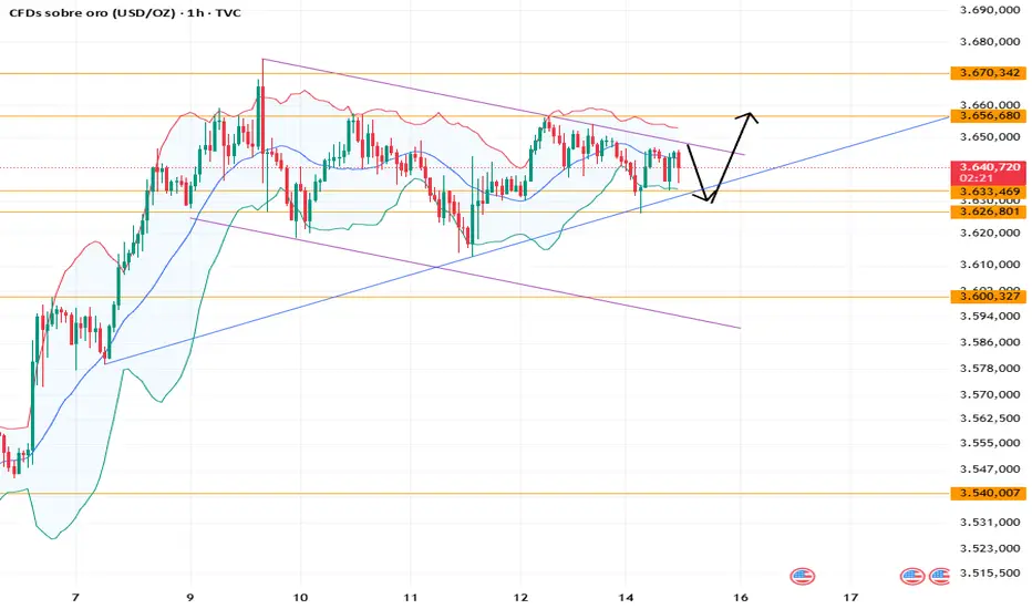 Gráfico de 1 Hora: Resistencia: 3647, Soporte: 3633