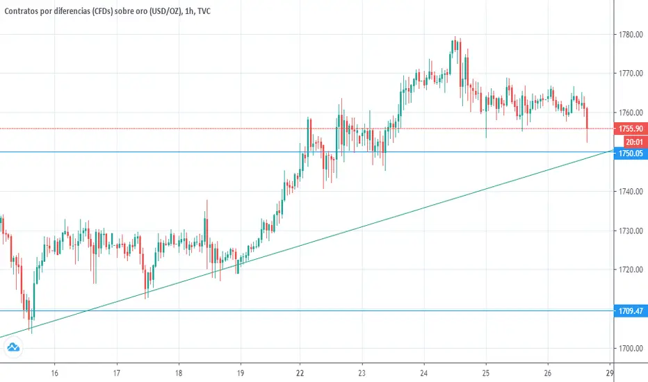 El #oro a punto de alcanzar objetivo, reajustado de momento a la tendencia alcista de la imagen