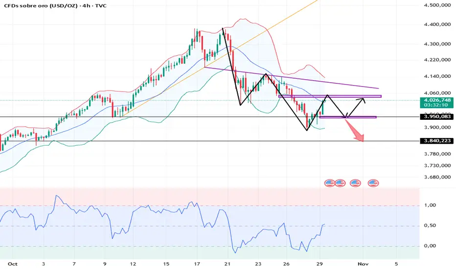 Gráfico de 4 horas: Resistencia: 4050, soporte: 3950.
