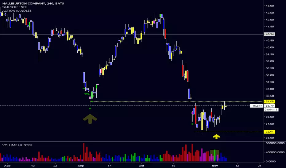 El VOLUME HUNTER marca un buen trigger de compra para la acción de HAL en busqueda de vencer la resistencia 36.09.