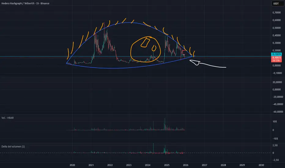 Actualmente HBAR cotiza alrededor de 0.104, todavía dentro de esa mirada inquieta. El nivel clave sigue siendo 0.085. Si el precio llega a perforar y aceptar por debajo de esa zona, el ojo se cerrará por completo, no como un parpadeo más, sino como un sueño largo, quizá de años, hasta que llegue una nueva altseason a despertarlo.