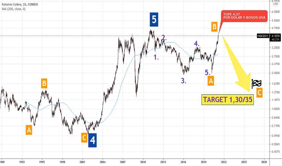 Dicho movimiento contratendencial, catalogado como onda b) debería haber finalizado en el nivel de 4,37 dólares establecido por elpiso técnico para el dxy (índice del dólar) y nivel emocional de techos de deuda norteamericana.