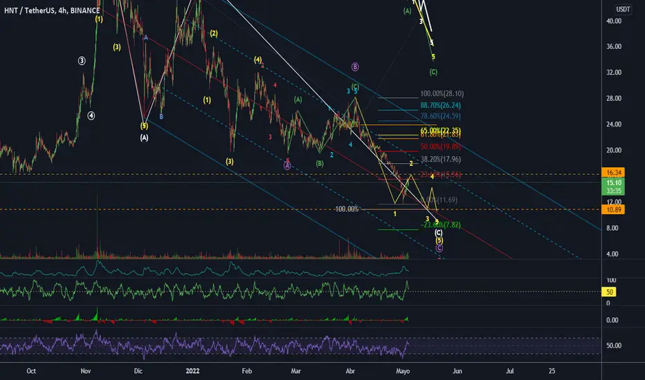 Creo que aun estamos corrigiendo con la onda 2 de la onda C (Diagonal Final) donde aun debería caer el precio sobre los 10$ para terminar onda 3,4,5 o una vez mas. Para comprar mas barato el hnt. Estaré trayendo mas actualizaciones.