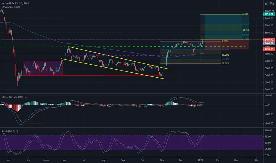 La superación de los 8400 puntos en el IBEX35 activa un segundo impulso Fibonacci que tiene como objetivo final los 10.000 puntos.