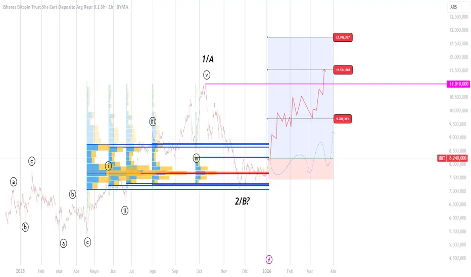 Especulamos estar en la antesala de un movimiento impulsivo de C/3 en el ETF de BTC, prestar atención a zonas de VAH que de ser rotas nos habilitan movimientos verticales y rápidos
