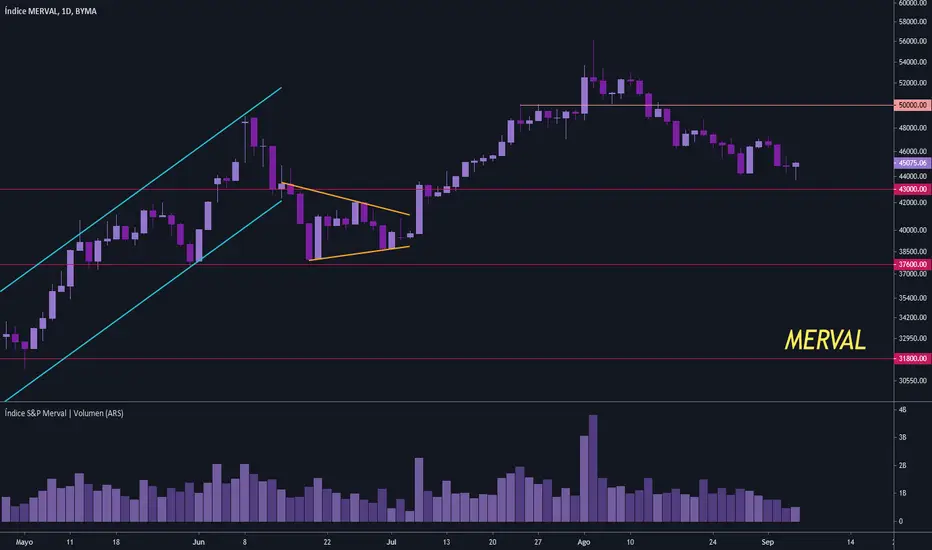 el swing bajista hizo un freno o descanso cerca del soporte de 43k. Podría especular con una acum/distr pero el mercado todavía se está acomodando a lo nuevo.