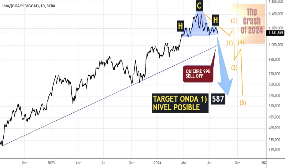 Target posible de primeros 5 movimientos de onda 1 bajista 587 puntos, es decir -47%.