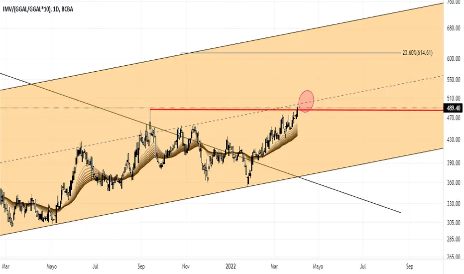 Rompió la resistencia de los 486 usd. Buena señal. Esperaría que supere la mitad del canal alcista, para tomar posición en algún activo ADR.