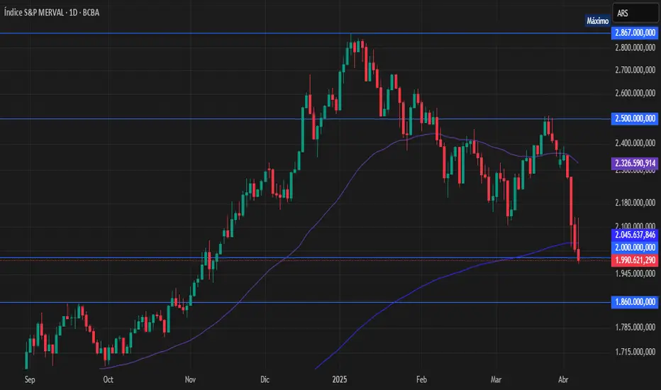 Por otro lado, de continuar cayendo, el próximo soporte para el Merval podría estar en los 1.860.000 puntos, nivel que fue resistencia en septiembre del año pasado, pero que ahora podría cambiar de función a soporte.