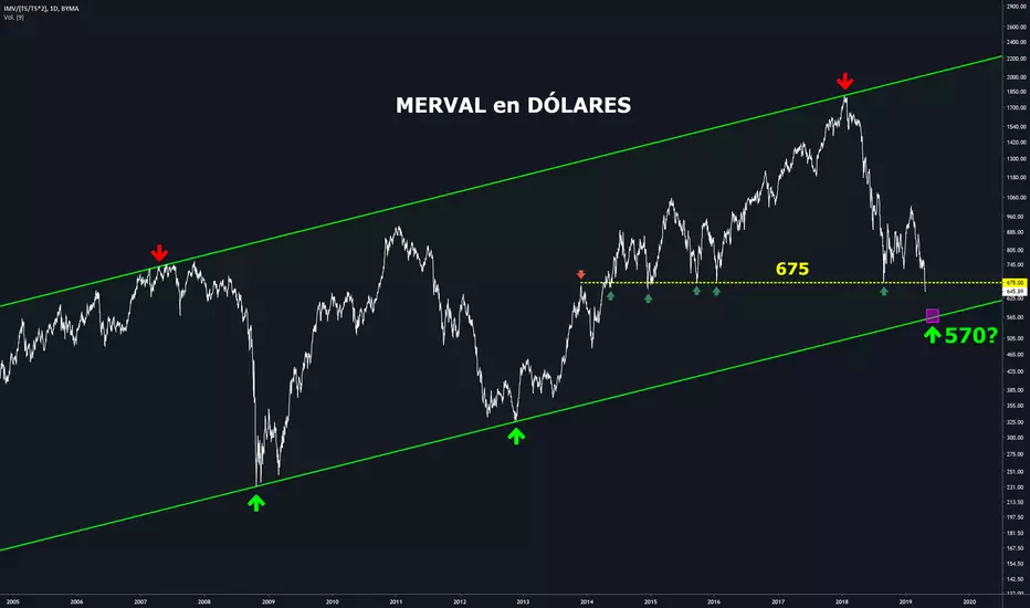 MERVAL en Dólares - Objetivo en piso del canal USD 570