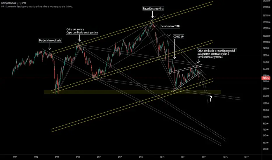 Primer soporte en 210/250. Si perfora ese soporte, posiblemente caiga hasta mínimos de 1990 y 2002. Hay muchas variables mundiales en juego actualmente. Todavía la bolsa de EEUU está en pisos muy importantes. Veremos qué pasa...