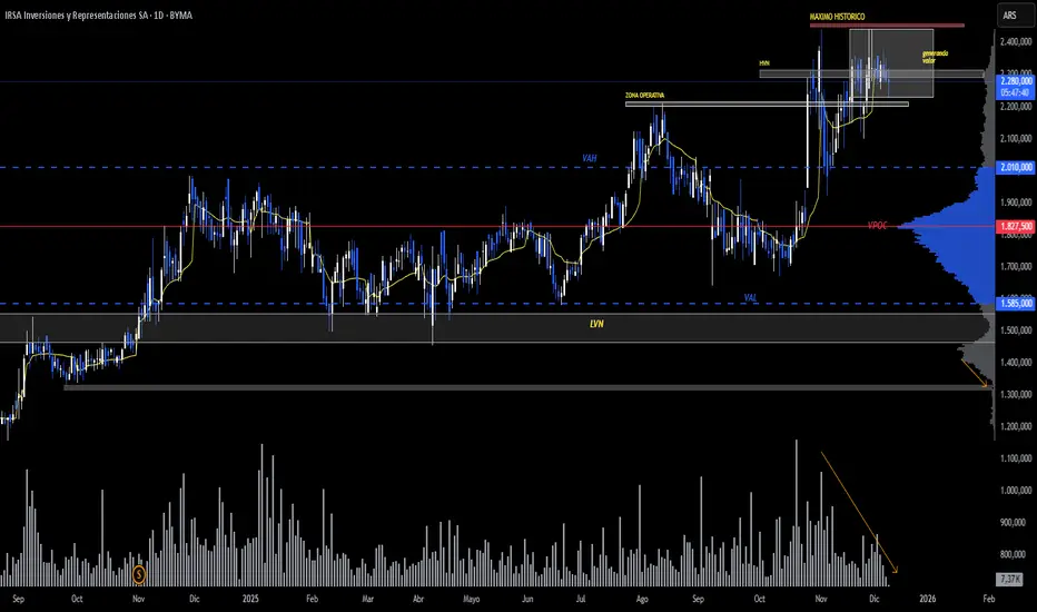 IRSA – Análisis Técnico Diario (Wyckoff + Volume Profile)