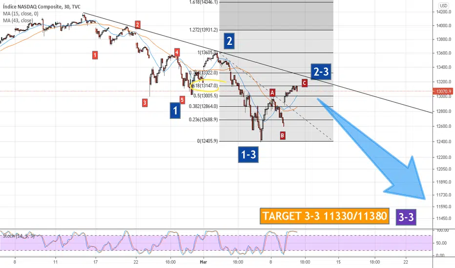 Por lo cuale spero un nuevo derrumbe próximas ruedas de 15% catalogado como onda 3-3 del primer movimiento bajista hacia un target de 11330/80 puntos.