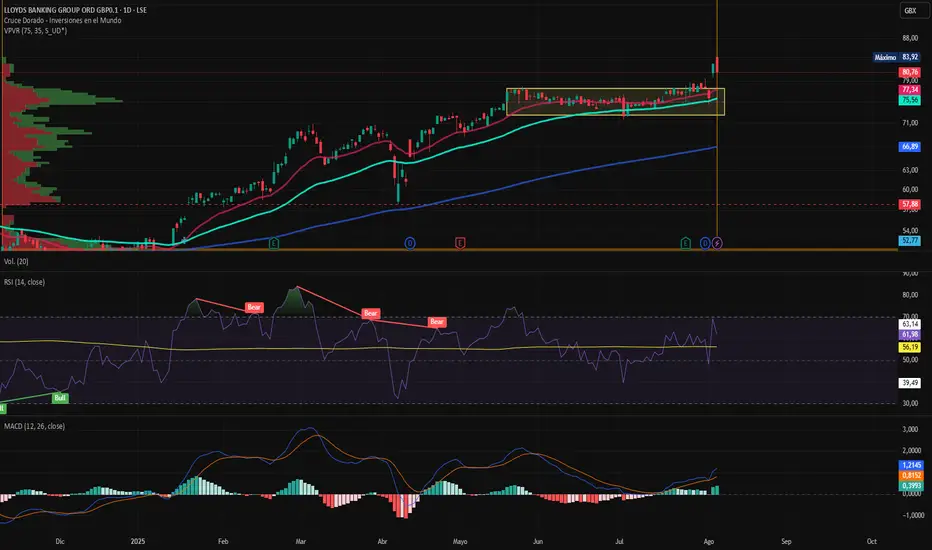 En conclusión, aunque no se descarta una corrección de corto plazo si persiste la presión regulatoria, el comportamiento técnico de Lloyds apunta a una estructura alcista robusta, respaldada por volumen creciente y señales técnicas positivas.