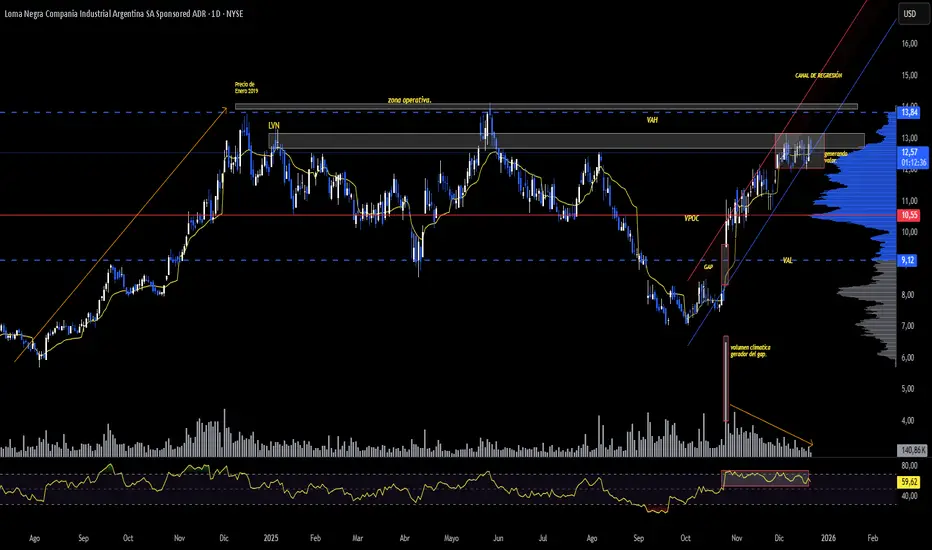 El precio de LOMA vuelve a trabajar en niveles de enero 2019, entrando en una zona operativa mayor que coincide con el VAH del perfil de volumen, lo que explica la actual pausa y lateralización.