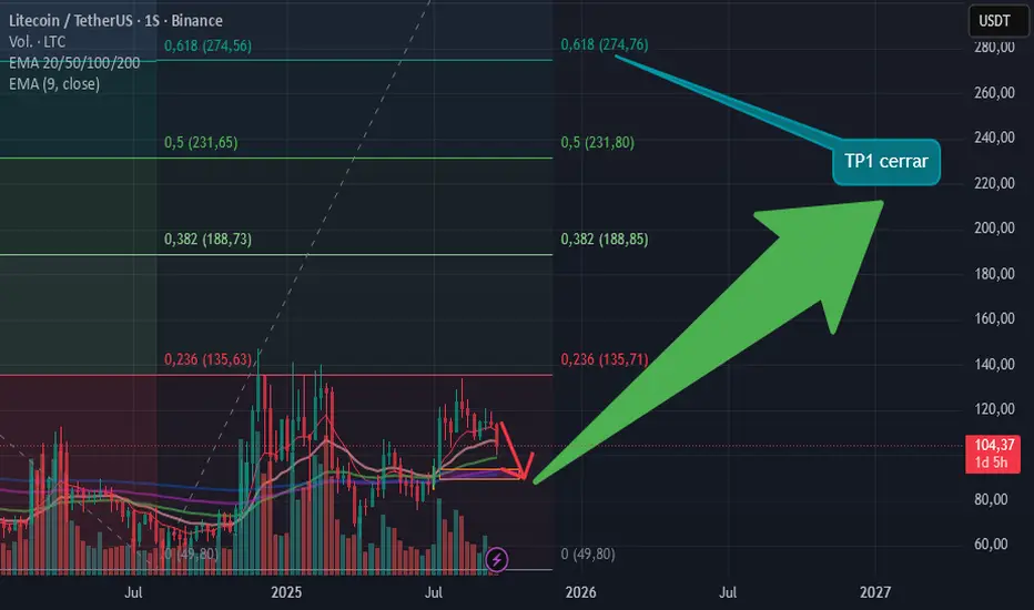¡Saludos a todos!LTC ha hecho un buen rebote desde que tocamos los $100 hasta aproximadamente los $125 📈. En mi idea había escrito que había probabilidad de visitar las dos cifras nuevamente, sin embargo, esa posibilidad estaba siempre y cuando BTC fuese a visitar por los $102.000 durante esa semana (Que ya vimos que finalizó su retroceso en $108.000)