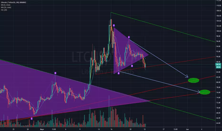 Como ven, mi previsión es que momentáneamente LTC (y también BTC hasta cerca de 7.200) están en baja, en un canal aún no bien definido en sus extremos, pero que ya va tomando forma.
