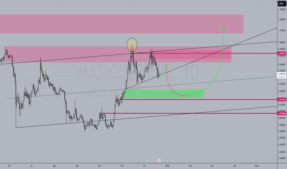 Hola a todos, Matic se encuentra en una zona crítica bajista pero podemos ver como ha podido romperla como vemos en el círculo. En mi opinión, tendremos un pequeño movimiento para ir a buscar la parte baja, coger liquidez y subir a la zona indicada.