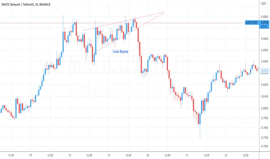 La cuña bursátil bajista suele verse al final de las tendencias bajistas. Indica que la tendencia bajista podría estar a punto de terminar y debemos esperar que el precio se mueva al alza. El objetivo de movimiento esperado suele ser hasta la base de la cuña.