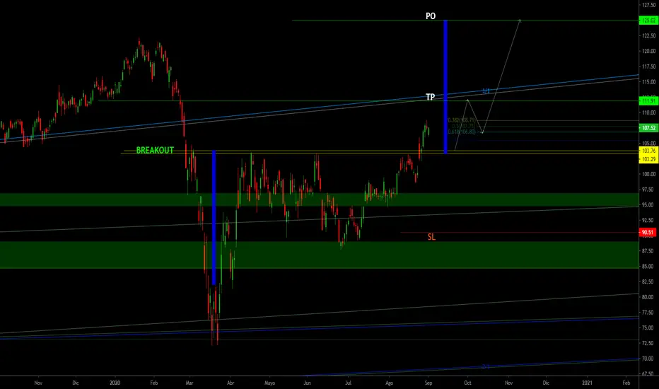 MDT DTF #TradingPlan... Después de que el precio realizó el #Breakout genera una proyección alcista considerando un TP en 111.91 usd los cuales encontrarían con la resistencia, ahí podríamos esperar un ajuste quizá del 50% después de #Breakout o del 61,8 para tomar impulso y romper resistencia de TP para buscar PO en 125.02 usd... Contemplar un SL en 90.51 usd por titulo...