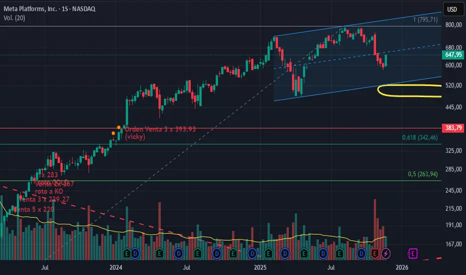 META viene moviendose en un canal alcista, por ahira dos toque superiores y uno inferior.