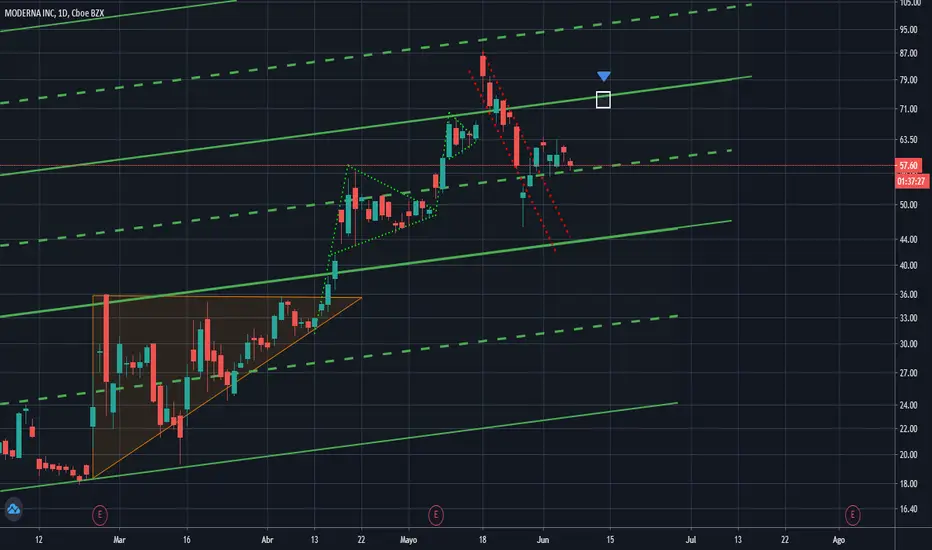 MODERNA INC (MRNA).. Siendo aguantada por la mediana para ir a buscar techo del canal, esperar un poco de confirmación.