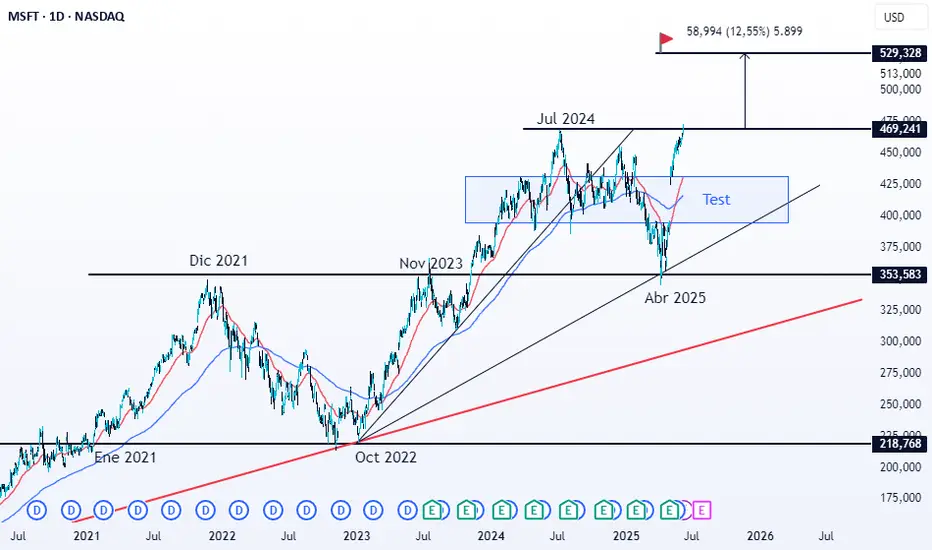 🔸 Objetivo técnico: $529, que coincide con el 161.8% de Fibonacci proyectado desde el último swing.