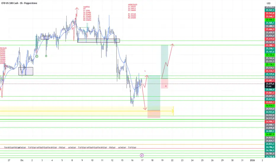 Si NY rompe 25,170 con fuerza sin retroceso, esperar re-test por arriba para comprar con objetivo 25,300.